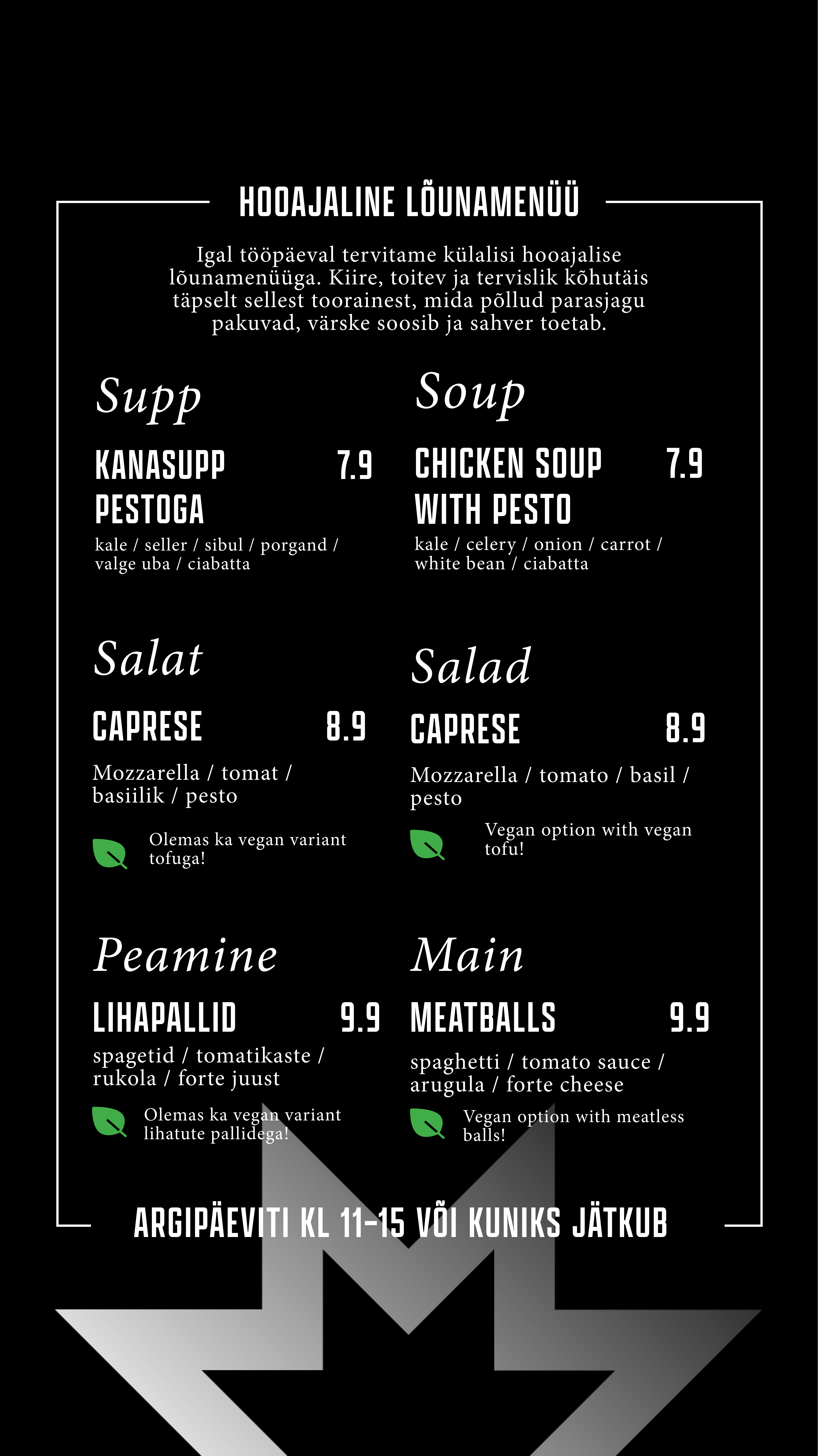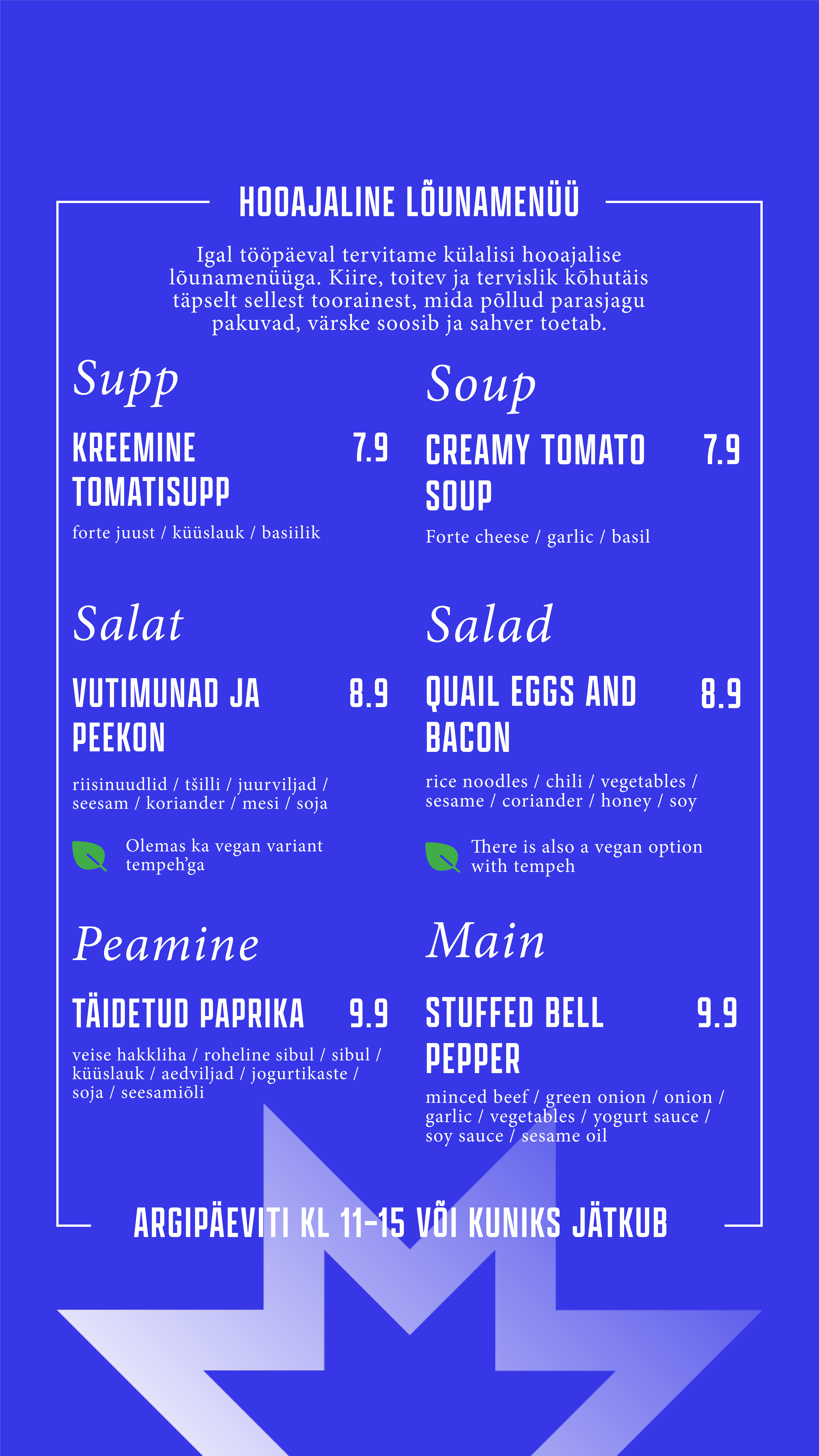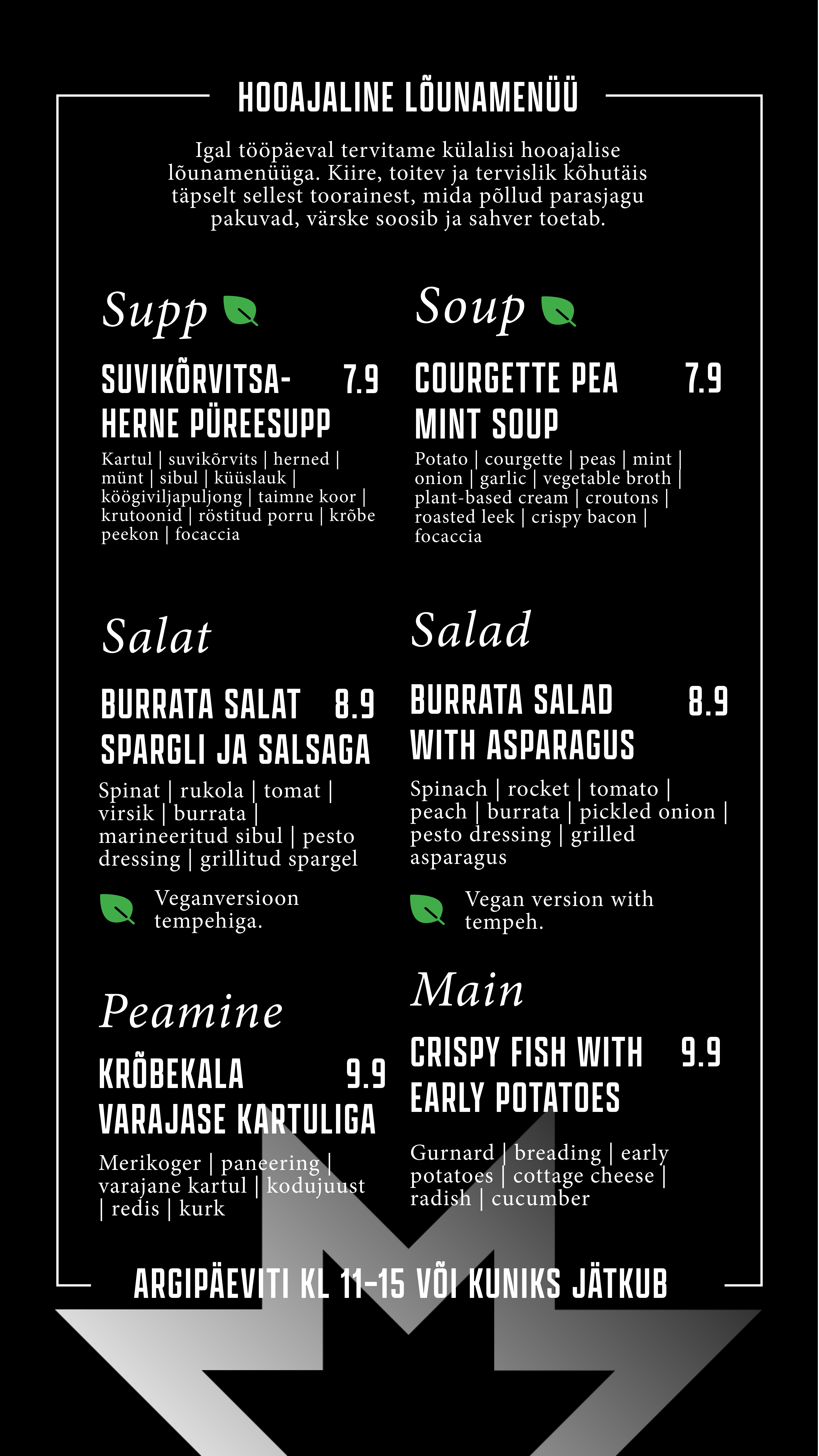 Õueala on justkui loomulik pikendus meie kohvikule – sama menüü, sama hea vibe, lihtsalt rohelisema vaatega. Astu läbi, vali endale meeliskoht, kas varjus või päikeselaigus, ning naudi mõnusat olemist keset linnadžunglit.