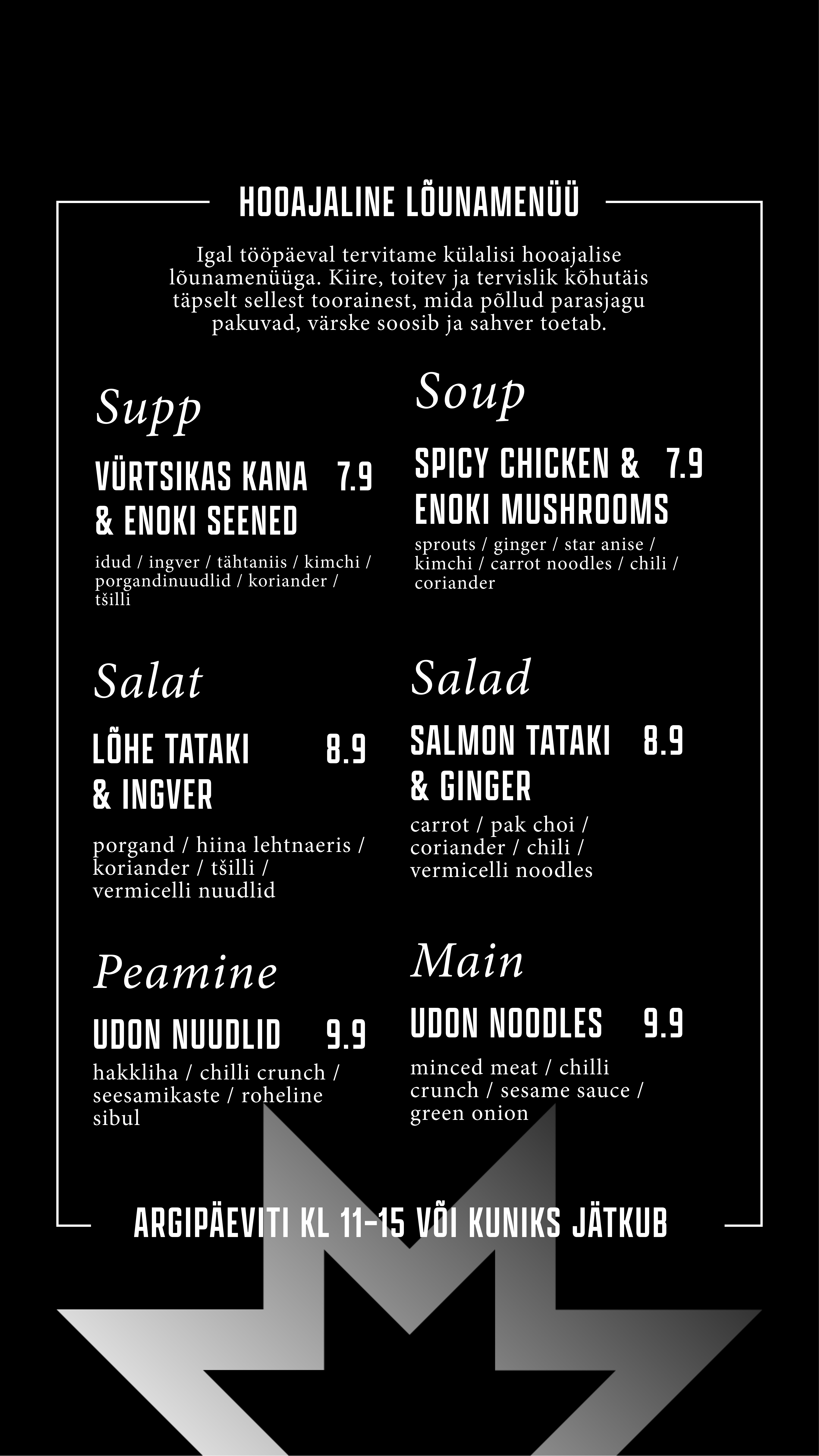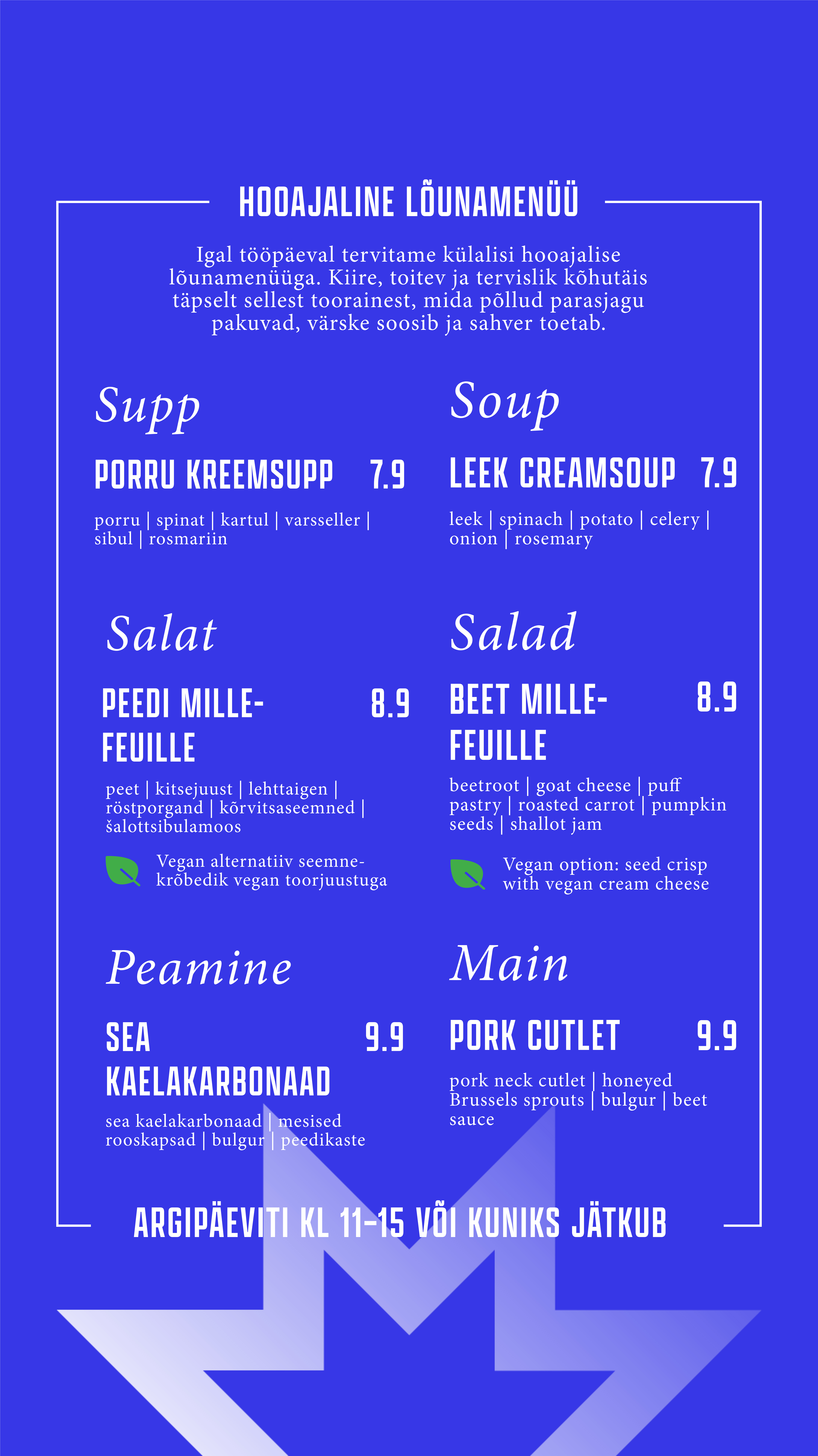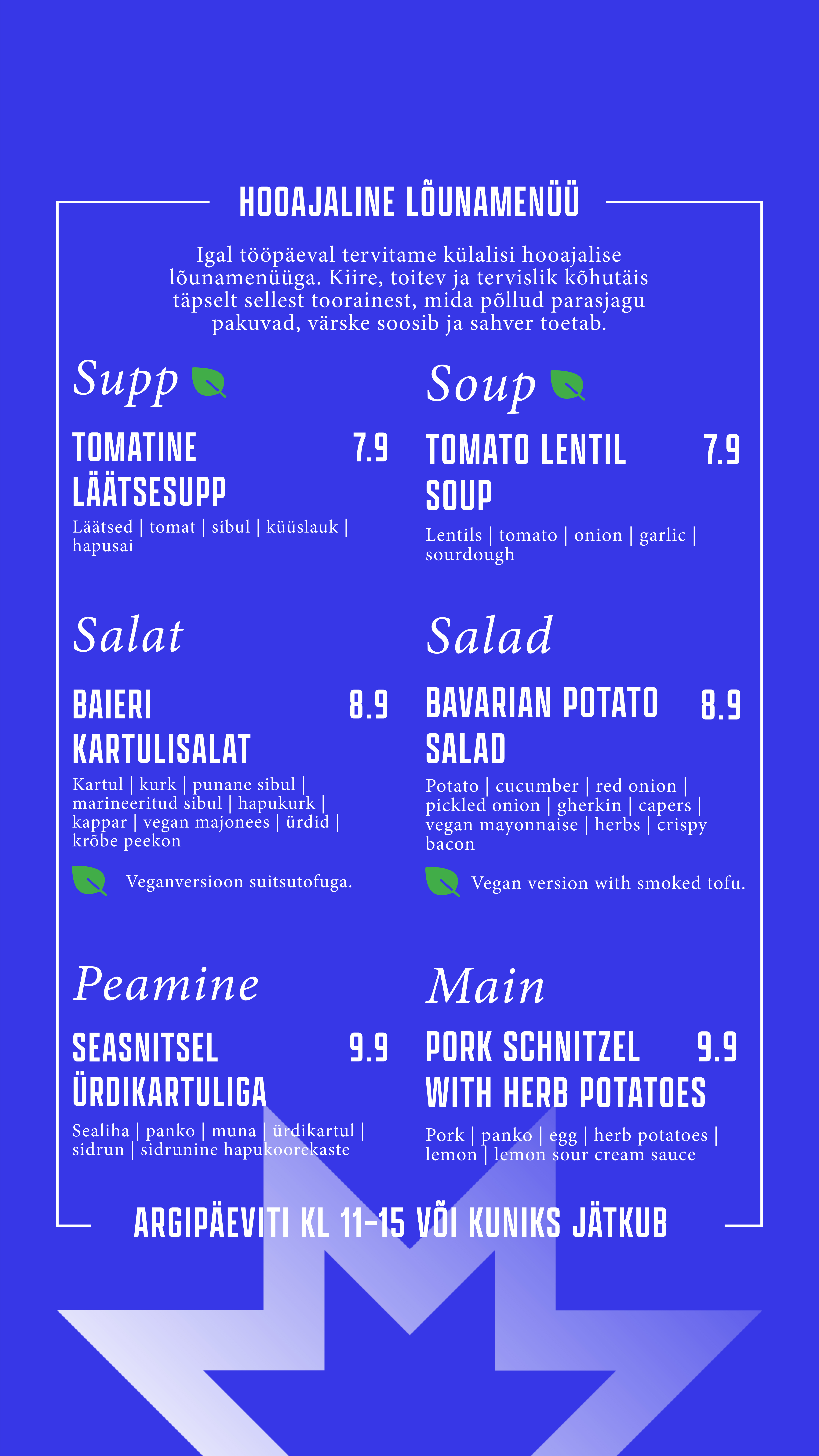 Õueala on justkui loomulik pikendus meie kohvikule – sama menüü, sama hea vibe, lihtsalt rohelisema vaatega. Astu läbi, vali endale meeliskoht, kas varjus või päikeselaigus, ning naudi mõnusat olemist keset linnadžunglit.